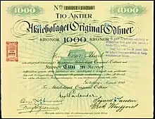 In 1891 Odhner opened a branch of his factory in Germany. Unfortunately, he had to sell it in 1892 to Grimme, Natalis & Co. because of the difficulty of having two manufacturing facilities so far apart. Grimme, Natalis & Co. started production in Braunschweig and sold their machines under the Brunsviga brand name[1] (Brunsviga is the Latin name of the town of Braunschweig[2]); they became very successful on their own.