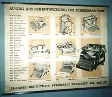 Olympia-Werke AG was an important German manufacturer of typewriters. Since the plant in Roffhausen near Wilhelmshaven was closed in 1991, only the brand name has survived.