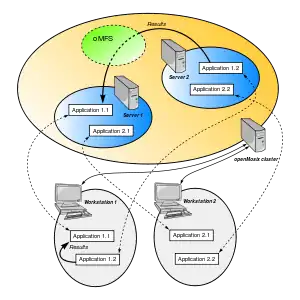 openMosix was a free cluster management system that provided single-system image (SSI) capabilities, e.g. automatic work distribution among nodes. It allowed program processes (not threads) to migrate to machines in the node's network that would be able to run that process faster (process migration). It was particularly useful for running parallel applications having low to moderate input/output (I/O).[1] It was released as a Linux kernel patch, but was also available on specialized Live CDs. openMosix development has been halted by its developers, but the LinuxPMI project is continuing development of the former openMosix code.