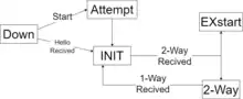 - Attempt: The attempt state is similar to the down state, except that a router is in the process of efforts to establish a conversation with another router, but is only used on non-broadcast multiple-access networks (NBMAs).