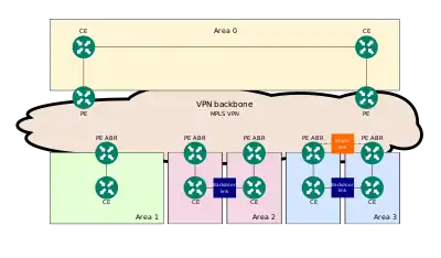 A customer can use OSPF over a MPLS VPN, where the service provider uses BGP or RIP as their interior gateway protocol.[8] When using OSPF over MPLS VPN, the VPN backbone becomes part of the OSPF backbone area 0. In all areas, isolated copies of the IGP are run.