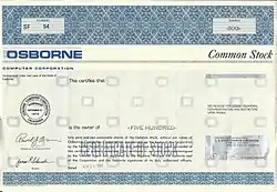 ![]() Osborne Computer Corporation Stock Certificate | |