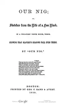- ↑ Our Nig: Sketches from the Life of a Free Black, Geo. C. Rand and Avery, 1859.