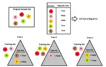 Out-of-bag (OOB) error, also called out-of-bag estimate, is a method of measuring the prediction error of random forests, boosted decision trees, and other machine learning models utilizing bootstrap aggregating (bagging). Bagging uses subsampling with replacement to create training samples for the model to learn from. OOB error is the mean prediction error on each training sample xi, using only the trees that did not have xi in their bootstrap sample.[1]