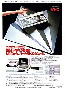 The PC-8001 was introduced on May 9, 1979, and its prototype went to the public at the Microcomputer Show '79 (マイクロコンピュータショウ'79) held from May 16 to 19 at the Tokyo Ryūtsū Center. Soon after the exposition, NEC received thousands of orders. It took half a year to ship about 10,000 backorders after shipment began on September 20, 1979.[17][22] By 1981, it dominated 40% of the Japanese personal computer market. About 250,000 units were shipped until production stopped in January 1983.[23] NEC also succeeded in expanding their personal computer chain in Japan. The chain owned 7 stores in 1979, 15 stores in 1980, more than 100 stores in 1981, and reached 200 stores by 1983.[21]