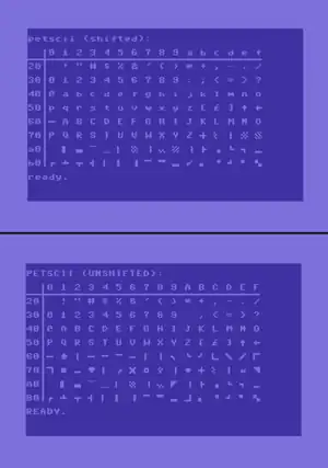 ![]() PETSCII (shifted and unshifted) | |