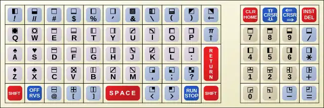 PETSCII (PET Standard Code of Information Interchange), also known as CBM ASCII, is the character set used in Commodore Business Machines' 8-bit home computers.