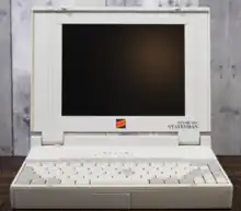 The Packard Bell Statesman was an economy line of notebook-sized laptops introduced in 1993 by Packard Bell. They were slower in performance and lacked features compared to most competitor products, but they were lower in price.[1] It was created in a collaboration between Packard Bell and Zenith Data Systems. The Statesman series was essentially a rebrand of Zenith Data Systems Z-Star 433 series, with the only notable difference of the logo in the middle and text on the front bezel.