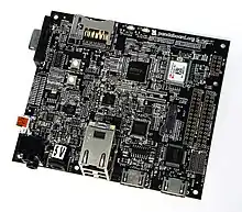 The PandaBoard was a low-power single-board computer development platform based on the Texas Instruments OMAP4430 system on a chip (SoC). The board has been available to the public at the subsidized[1] price of US$174 since 27 October 2010. It is a community supported development platform.[2]