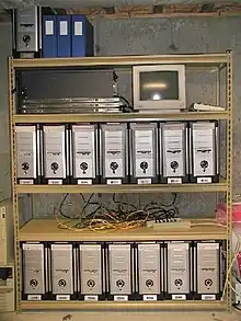 A cluster is a group of loosely coupled computers that work together closely, so that in some respects they can be regarded as a single computer.[43] Clusters are composed of multiple standalone machines connected by a network. While machines in a cluster do not have to be symmetric, load balancing is more difficult if they are not. The most common type of cluster is the Beowulf cluster, which is a cluster implemented on multiple identical commercial off-the-shelf computers connected with a TCP/IP Ethernet local area network.[44] Beowulf technology was originally developed by Thomas Sterling and Donald Becker. 87% of all Top500 supercomputers are clusters.[45] The remaining are Massively Parallel Processors, explained below.