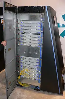 A massively parallel processor (MPP) is a single computer with many networked processors. MPPs have many of the same characteristics as clusters, but MPPs have specialized interconnect networks (whereas clusters use commodity hardware for networking). MPPs also tend to be larger than clusters, typically having "far more" than 100 processors.[47] In an MPP, "each CPU contains its own memory and copy of the operating system and application. Each subsystem communicates with the others via a high-speed interconnect."[48]