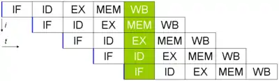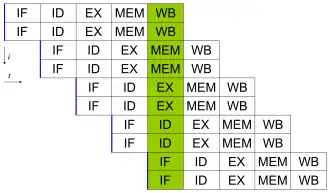 All modern processors have multi-stage instruction pipelines. Each stage in the pipeline corresponds to a different action the processor performs on that instruction in that stage; a processor with an N-stage pipeline can have up to N different instructions at different stages of completion and thus can issue one instruction per clock cycle (IPC = 1). These processors are known as scalar processors. The canonical example of a pipelined processor is a RISC processor, with five stages: instruction fetch (IF), instruction decode (ID), execute (EX), memory access (MEM), and register write back (WB). The Pentium 4 processor had a 35-stage pipeline.[34]