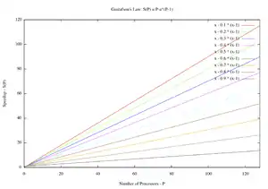 Both Amdahl's law and Gustafson's law assume that the running time of the serial part of the program is independent of the number of processors. Amdahl's law assumes that the entire problem is of fixed size so that the total amount of work to be done in parallel is also independent of the number of processors, whereas Gustafson's law assumes that the total amount of work to be done in parallel varies linearly with the number of processors.