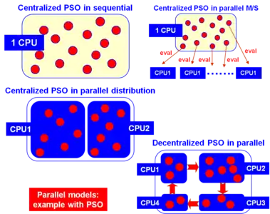 - Move acceleration model: The quality of each move is evaluated in a parallel centralized way. That model is particularly interesting when the evaluation function can be itself parallelized as it is CPU time-consuming and/or I/O intensive. In that case, the function can be viewed as an aggregation of a certain number of partial functions that can be run in parallel.