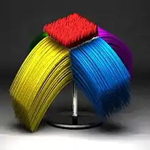 In 1985, Reeves extended the concept to include rendering the entire life cycle of each particle simultaneously, the result transforms particles into static strands of material that show the overall trajectory, rather than points. These strands can be used to simulate hair, fur, grass, and similar materials. The strands can be controlled with the same velocity vectors, force fields, spawning rates, and deflection parameters that animated particles obey. In addition, the rendered thickness of the strands can be controlled and in some implementations may be varied along the length of the strand. Different combinations of parameters can impart stiffness, limpness, heaviness, bristliness, or any number of other properties. The strands may also use texture mapping to vary the strands' color, length, or other properties across the emitter surface.[4]