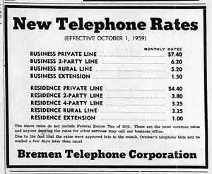 - ↑ "Party line phones show tremendous increase in state". The Daily Times. Beaver and Rochester. April 20, 1943. p. 4. Retrieved July 27, 2014.