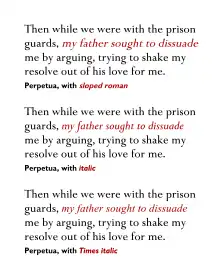 - Perpetua MT (professional release including small caps and text figures)