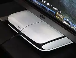 The Phantom Lapboard is a wireless keyboard made by the company. It was released on June 23, 2008, two years after its originally planned release date. Designed as a component of the Phantom game console, it is sold for use with Internet TV and PC video games since the console has been cancelled.[26] In 2010, a new model of the Lapboard was released to work with Internet TV, gaming and media centers.[27]