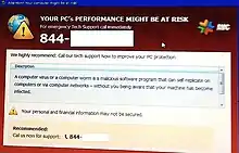 An alternative technique to impersonation-based phishing is the use of fake news articles to trick victims into clicking on a malicious link. These links often lead to fake websites that appear legitimate,[52] but are actually run by attackers who may try to install malware or present fake "virus" notifications to the victim.[53]