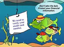 The term "phishing" was first recorded in 1995 in the cracking toolkit AOHell, but may have been used earlier in the hacker magazine 2600.[4][5][6] It is a variation of fishing and refers to the use of lures to "fish" for sensitive information.[5][7][8]