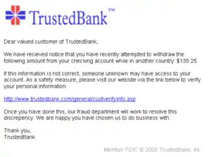 {{cite web}}: External link in(help)|title= - Legon, Jeordan (January 26, 2004). "Phishing scams reel in your identity". CNN. Archived from the original on November 6, 2018. Retrieved April 8, 2006.