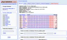 ![]() main page of phpLiteAdmin showing the various table management actions possible | |