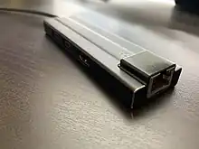 Another distinctive feature of the PinePhone is the I2C connector under the back cover, which can be used for adding mods to the phone.[20] In 2019 and 2020, Pine64 stated that it was developing four mods: a Psion Series 5-inspired physical keyboard,[21] a 5000mAh battery, wireless charging[22] and a fingerprint sensor.[23]