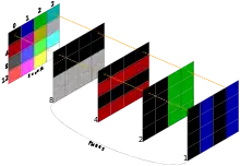 This scheme originated in the early days of computer graphics. The memory chips of this era can not supply data fast enough on their own to generate a picture on a TV screen or monitor from a large framebuffer.[1] By splitting the data up into multiple planes, each plane can be stored on a separate memory chip. These chips can then be read in parallel at a slower rate, allowing graphical display on modest hardware, like game consoles of the third and fourth generations and home computers of the 80s. The EGA video adapter on early IBM PC computers uses planar arrangement in color graphical modes for this reason. The later VGA includes one non-planar mode which sacrifices memory efficiency for more convenient access.[2]