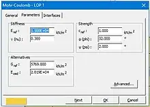 ![]() Input parameters given for the Mohr–Coulomb soil model | |