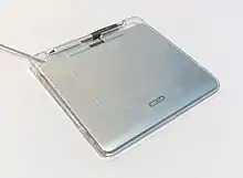 A cursor (also called a puck) is similar to a mouse, except that it has a window with cross hairs for pinpoint placement, and it can have as many as 16 buttons. A pen (also called a stylus) looks like a simple ballpoint pen but uses an electronic head instead of ink. The tablet contains electronics that enable it to detect movement of the cursor or pen and translate the movements into digital signals that it sends to the computer."[10] This is different from a mouse because each point on the tablet represents a point on the screen.