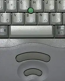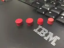A pointing stick (or trackpoint, also referred to generically as a nub or nipple) is a small analog stick used as a pointing device typically mounted centrally in a computer keyboard. Like other pointing devices such as mice, touchpads or trackballs, operating system software translates manipulation of the device into movements of the pointer on the computer screen. Unlike other pointing devices, it reacts to sustained force or strain rather than to gross movement, so it is called an "isometric"[1] pointing device. IBM introduced it commercially in 1992 on its laptops under the name "TrackPoint", and patented an improved version of it in 1997 (but the patent expired in 2017).[2] It has been used for business laptops, such as Acer's TravelMate, Dell's Latitude, HP's EliteBook and Lenovo's ThinkPad.