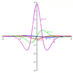 The Poisson wavelet is a family of complex valued functions indexed by the set of positive integers and defined by[4][5]