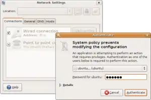 Polkit (formerly PolicyKit) is a component for controlling system-wide privileges in Unix-like operating systems. It provides an organized way for non-privileged processes to communicate with privileged ones. Polkit allows a level of control of centralized system policy. It is developed and maintained by David Zeuthen from Red Hat and hosted by the freedesktop.org project. It is published as free software under the terms of version 2 of the GNU Lesser General Public License.[3]