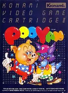 Pooyan (プーヤン) is a fixed shooter arcade video game released by Konami in Japan in 1982. It was manufactured in North America by Stern Electronics. The player controls "Mama", a pig whose babies have been kidnapped by a group of wolves.