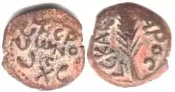 The exact time of Festus in office is not known. The earliest proposed date for the start of his term is c. 55–56, while the latest is 61.[1] These extremes have not gained much support and most scholars opt for a date between 58 and 60. F. F. Bruce says that, "The date of his [Felix's] recall and replacement by Porcius Festus is disputed, but a change in the provincial coinage of Judaea attested for Nero's fifth year points to A.D. 59"[2] Conybeare and Howson lay out an extended argument for the replacement taking place in 60.[3]