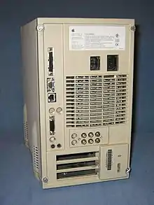 The Power Macintosh 8500 (sold as the Power Macintosh 8515 in Europe and Japan) is a personal computer designed, manufactured and sold by Apple Computer from August 1995 to February 1997. Billed as a high-end graphics computer, the Power Macintosh 8500 was initially released with a 120 MHz PowerPC 604, and unlike earlier Power Macintosh machines, the CPU was mounted on an upgradeable daughtercard. Though slower than the 132 MHz Power Macintosh 9500, the first-generation 8500 featured several audio and video (S-Video and composite video) in/out ports not found in the 9500. In fact, the 8500 incorporated near-broadcast quality (640×480) A/V input and output and was the first personal computer to do so, but no hard drive manufactured in 1997 could sustain the 18 MB/s data rate required to capture video at that resolution. Later, special "AV" hard drives were made available that could delay thermal recalibration until after a write operation had completed. With special care to minimize fragmentation, these drives were able to keep up with the 8500's video circuitry.