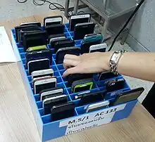 Forms of technology addiction have been considered as diagnoses since the mid 1990s.[3] In current research on the adverse consequences of technology overuse, "mobile phone overuse" has been proposed as a subset of forms of "digital addiction" or "digital dependence", reflecting increasing trends of compulsive behavior among users of technological devices.[4] Researchers have termed these behaviors "smartphone addiction" and "problematic smartphone use", as well as referring to use of non-smartphone mobile devices (cell phones).[5]