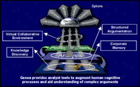 The program was designed to support both top-down and bottom-up approaches; a policy maker could hypothesize a possible attack and use Genoa to look for supporting evidence of such a plot, or it would compile pieces of intelligence into a diagram and suggest possible outcomes. Human analysts would then be able to modify the diagram to test various cases.[2]