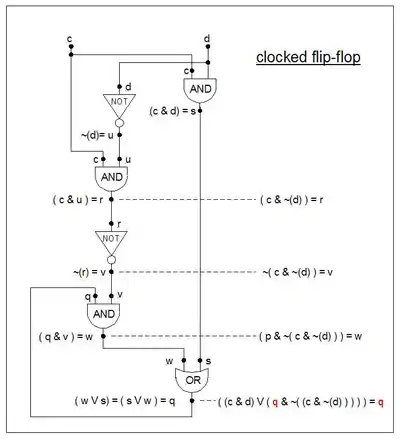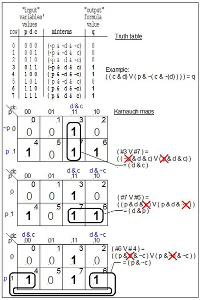 | row | q | d | c | ( | ( | c | & | d | ) | ∨ | ( | q | & | ~ | ( | ( | c | & | ~ | ( | d | ) | ) | ) | ) | ) | =q | Description |