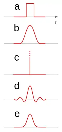 A Gaussian pulse is shaped as a Gaussian function and is produced by the impulse response of a Gaussian filter. It has the properties of maximum steepness of transition with no overshoot and minimum group delay.