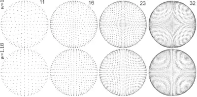 One caveat of PVQ is that it operates under the taxicab distance (L1-norm). Conversion to/from the more familiar Euclidean distance (L2-norm) is possible via vector projection, though results in a less uniform distribution of quantization points (the poles of the Euclidean n-sphere become denser than non-poles).[3] No efficient algorithm for the ideal (i.e., uniform) vector quantization of the Euclidean n-sphere is known as of 2010.[4] This non-uniformity can be reduced by applying deformation like coordinate-wise power before projection, reducing mean-squared quantization error by ~10%.[2]