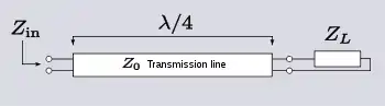 A quarter-wave impedance transformer, often written as λ/4 impedance transformer, is a transmission line or waveguide used in electrical engineering of length one-quarter wavelength (λ), terminated with some known impedance. It presents at its input the dual of the impedance with which it is terminated.
