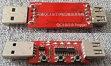 Though not publicly documented, the voltage negotiation between device and charger has been reverse-engineered, and a custom voltage can be manually requested from the charger using a trigger circuit that simulates the negotiation to an end device.[2][3]