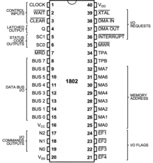 The COSMAC (Complementary Symmetry Monolithic Array Computer) is an 8-bit microprocessor family introduced by RCA. It is historically notable as the first CMOS microprocessor.[1] The first production model was the two-chip CDP1801R and CDP1801U, which were later combined into the single-chip CDP1802.[2] The 1802 represented the majority of COSMAC production, and today the entire line is known simply as the RCA 1802.