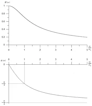This shows that, if the output is taken across the capacitor, high frequencies are attenuated (shorted to ground) and low frequencies are passed. Thus, the circuit behaves as a low-pass filter. If, though, the output is taken across the resistor, high frequencies are passed and low frequencies are attenuated (since the capacitor blocks the signal as its frequency approaches 0). In this configuration, the circuit behaves as a high-pass filter.