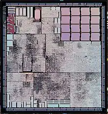 The graphics accelerator consists of 3.5 million transistors built on SGS-Thomson's 5LM 350 nm fabrication process and is clocked at 100 MHz.[2][3][4] RIVA 128 has a single pixel pipeline capable of 1 pixel per clock when sampling one texture. It is specified to output pixels at a rate of 100 million per second and 25-pixel triangles at 1.5 million per second.[2] There are 12 KiB of on-chip memory used for pixel and vertex caches.[2] The chip was limited to a 16-bit (Highcolor) pixel format when performing 3D acceleration and a 16-bit Z-buffer.