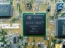 The RIVA 128, or "NV3", was a consumer graphics processing unit created in 1997 by Nvidia. It was the first to integrate 3D acceleration in addition to traditional 2D and video acceleration. Its name is an acronym for Real-time Interactive Video and Animation accelerator.[2]