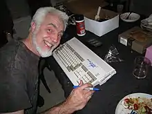 ![]() Signing an Amiga 1200 for the 25th anniversary of the Amiga (2011) | |