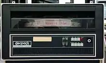 The RK05 was a moving head magnetic disk drive manufactured by DEC.[5][lower-alpha 1] It stored approximately 2.5 MB on a 14", single-platter IBM-2315-style front-loading removable disk cartridge. The cartridge permitted users to have relatively unlimited off-line storage and to have very fast access to such data.