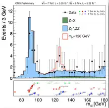 ![]() The CMS experiments presented on July 4, 2012, the status of the Standard Model Higgs search. All plots presented that day used ROOT. | |